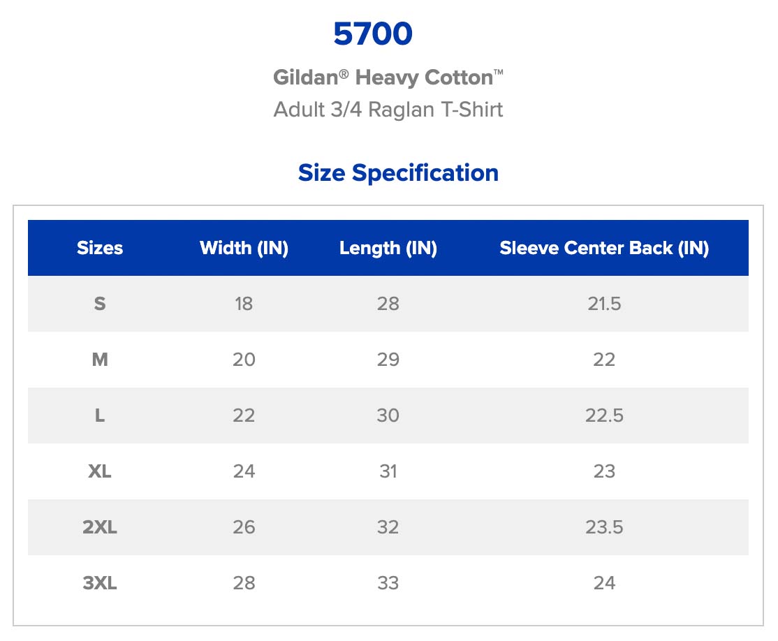 Gildan® Heavy Cotton™, Adult 3/4 Raglan T-Shirt