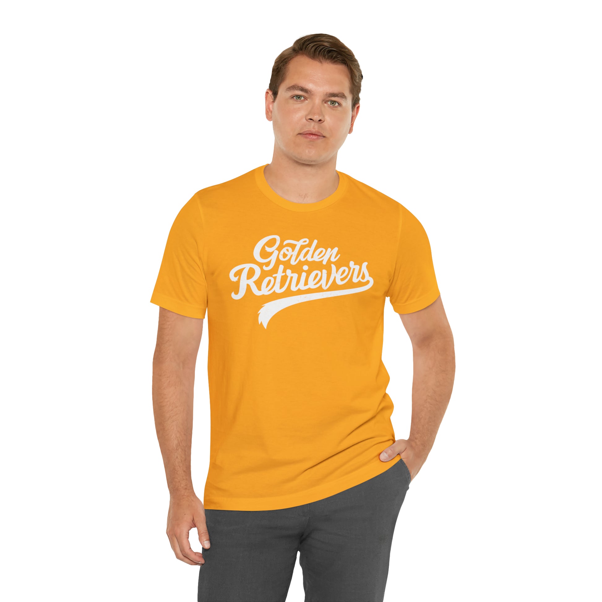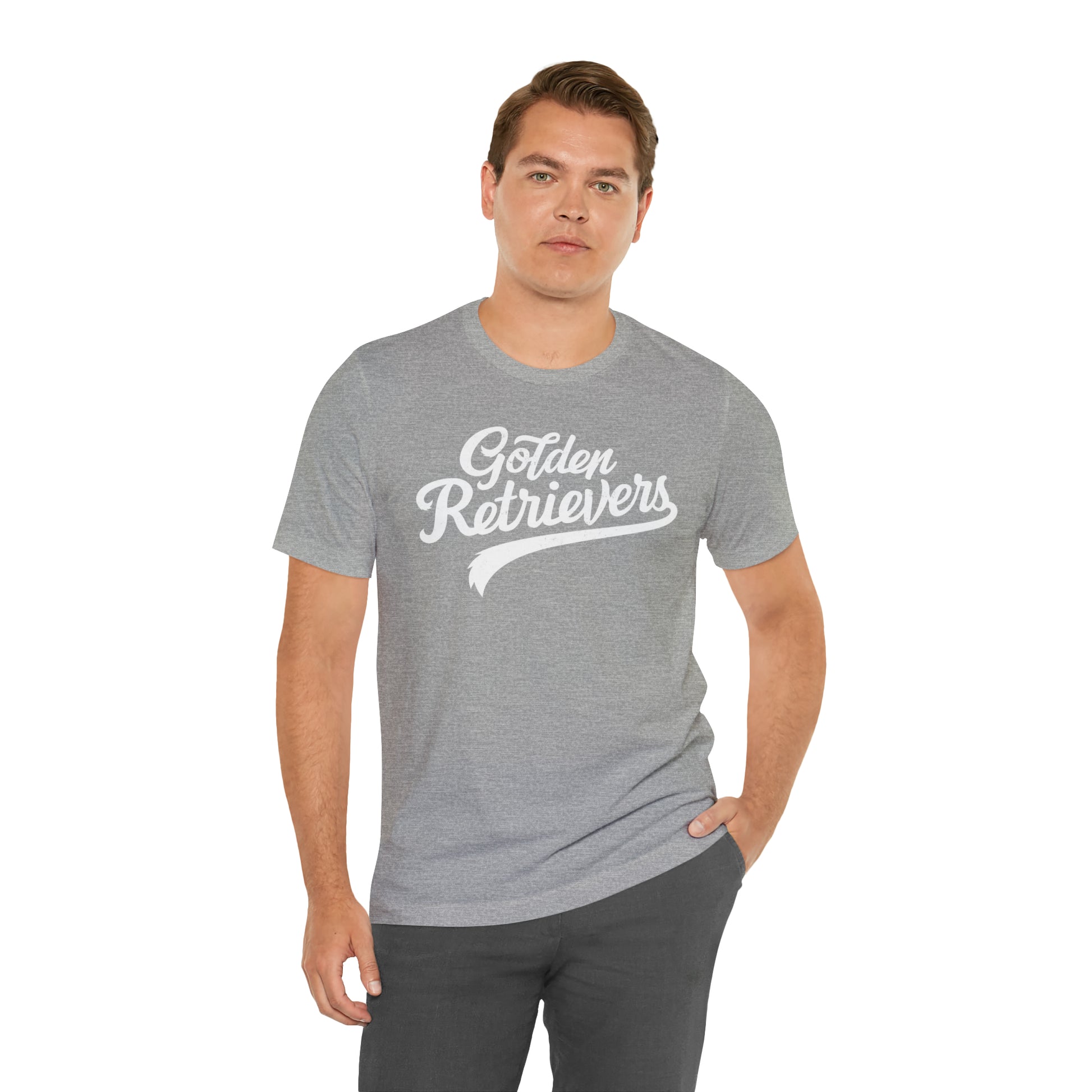 Golden Retrievers Script Unisex Tee, with Distressed White Print